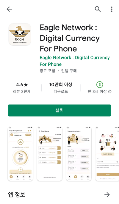 이글네트워크 코인은 가입후 1년간만 무료체굴을