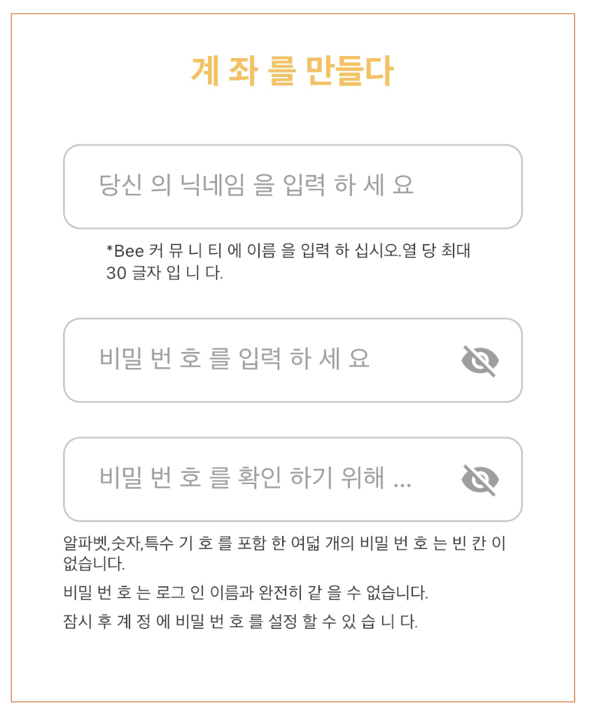 국가를 Korea, Republic of South Korea(+82)로 선택하고, 휴대폰 인증을 거친 후에 닉네임과 비밀번호를 입력합니다.