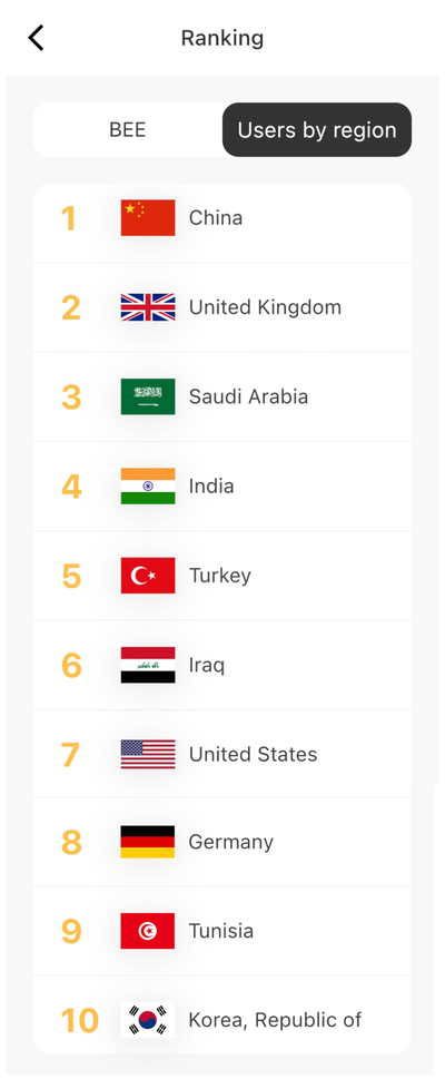 홍콩에서 만든 블록체인회사답게 사용국가 순위는 1위가 중국입니다.
